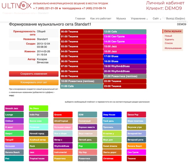 Система музыкально-информационного вещания ULTIVOX - это облачный сервис, управляемый через личный кабинет. Вы задаете параметры эфира, все остальное система делает сама.